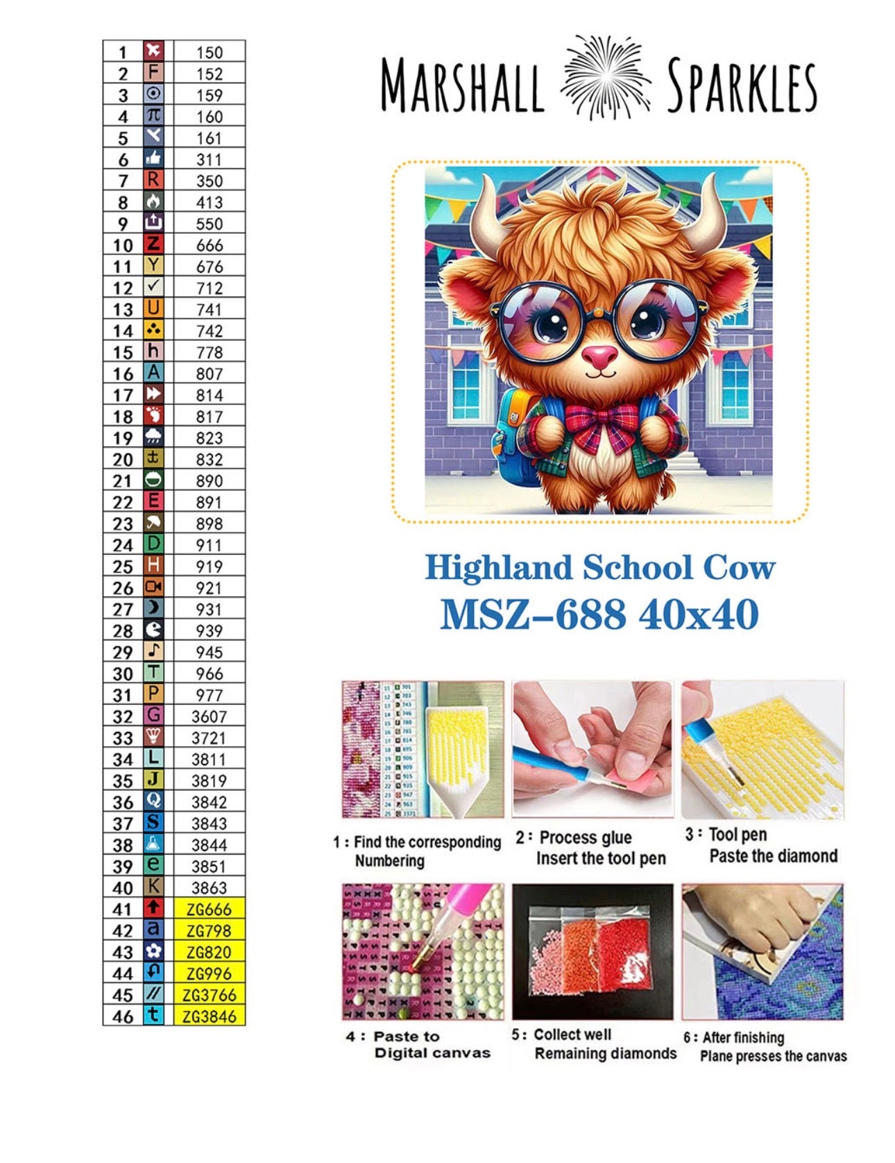 February Highland School Cow © 40x40 Square Fairy drill